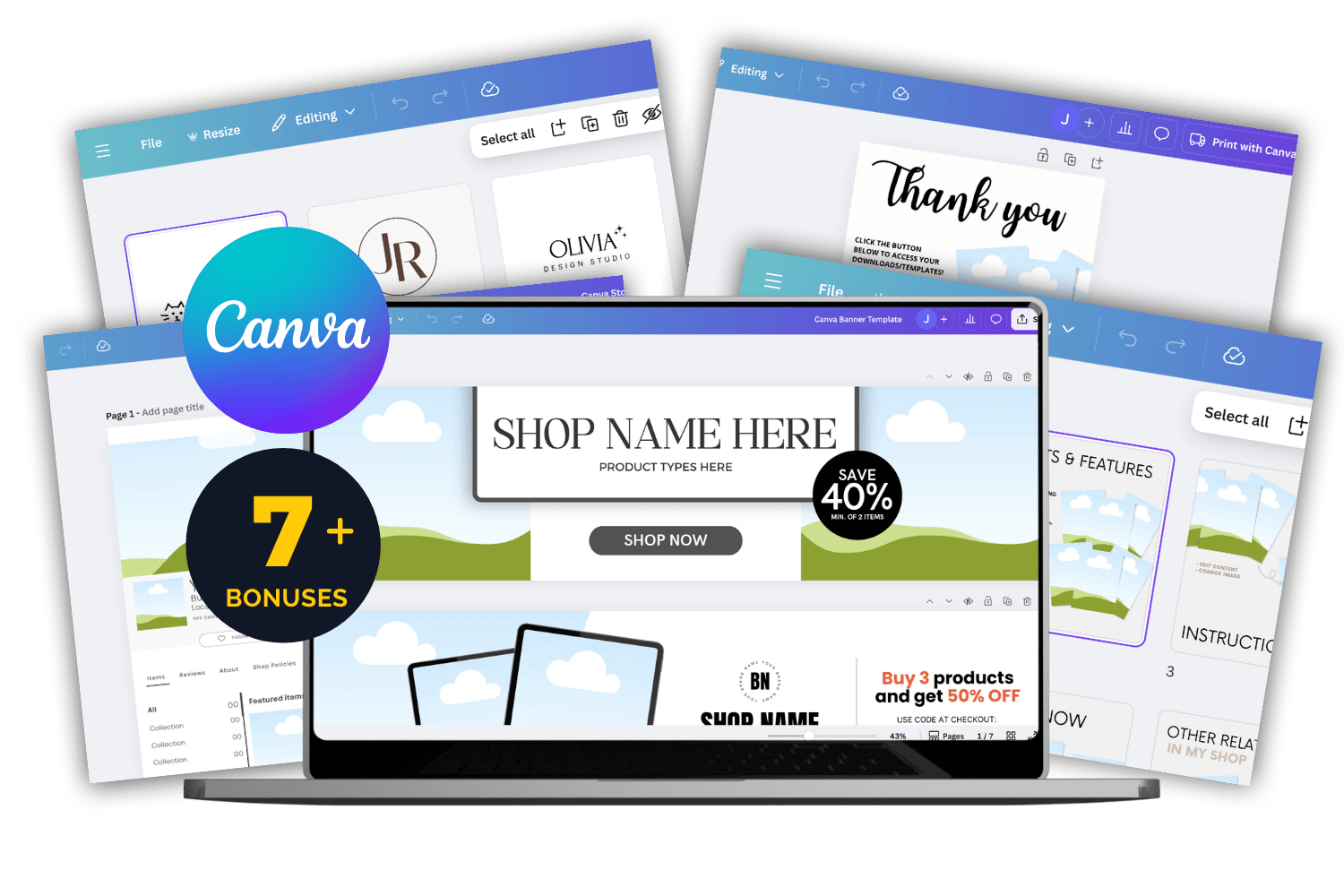 A complete, plug-and-play Canva template kit designed to help beginners launch fast with polished, high-conversion visuals — even with zero design experience. These templates remove the guesswork and give your store a professional look from day one.